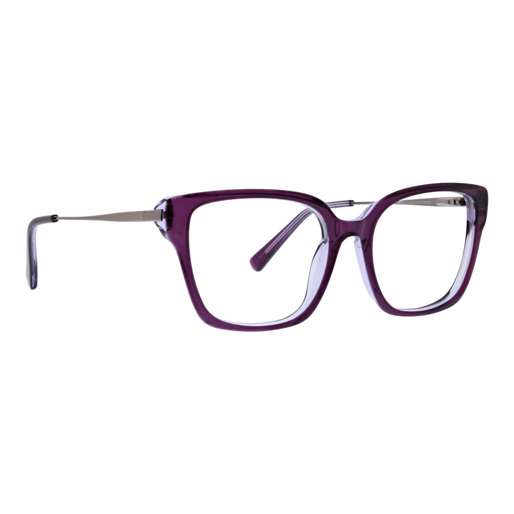 Next in line is Emberly, available in Dusty Blue and Purple. Emberly showcases a modified square shape, beautiful crystal acetates, and metal temples with embossed rivet detail. The milling on the back of the eye rim creates an angular effect, making Emberly the perfect companion for your next adventure.