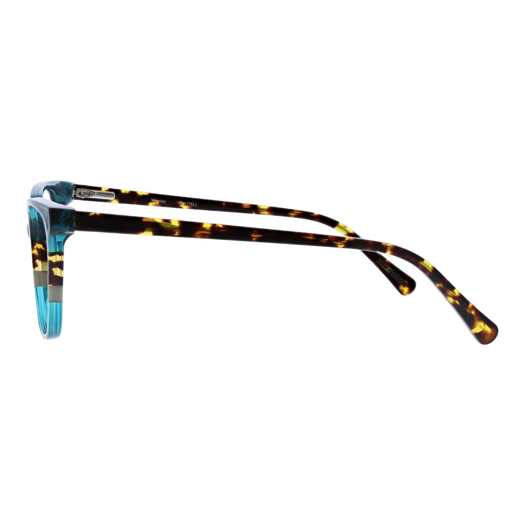 Finally, we present Wrenley, available in Brown and Teal. Wrenley boasts a contemporary square shape with a flattering uplift. Its unique tricolored crystal acetates create a color-blocking effect on the front, while the spring hinge adds durability and comfort. Wrenley is perfect for those who love to explore the world in style.